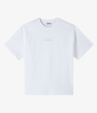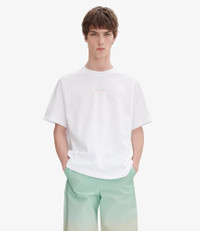 A.P.C. x Asics t-shirt. - Straight cut with a loose fit. - Crew neck. - Small multicolored A.P.C. and Asics logo at the center. - 100% organic cotton. Size Advice - Kirill is 6'1 tall and is wearing size M. Composition & Material - 100% cotton. - Portuguese material. - Made in Portugal. - Machine wash cold (86°F) inside-out.