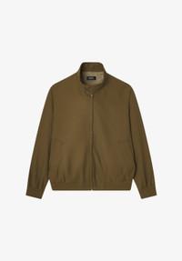 - Soft lined woollen material. - Straight cut. - High collar with buttoned flap. - Two side pockets. - A.P.C. logo embroidered tone-on-tone over the heart. - Zip closure. - Tone-on-tone ribbed hem. Size Advice - Henry is 6' tall and is wearing size M. Composition & Material - 55% polyester. 45% wool. - Portuguese material. - Made in Bugaria. - Hand wash or delicate cycle.