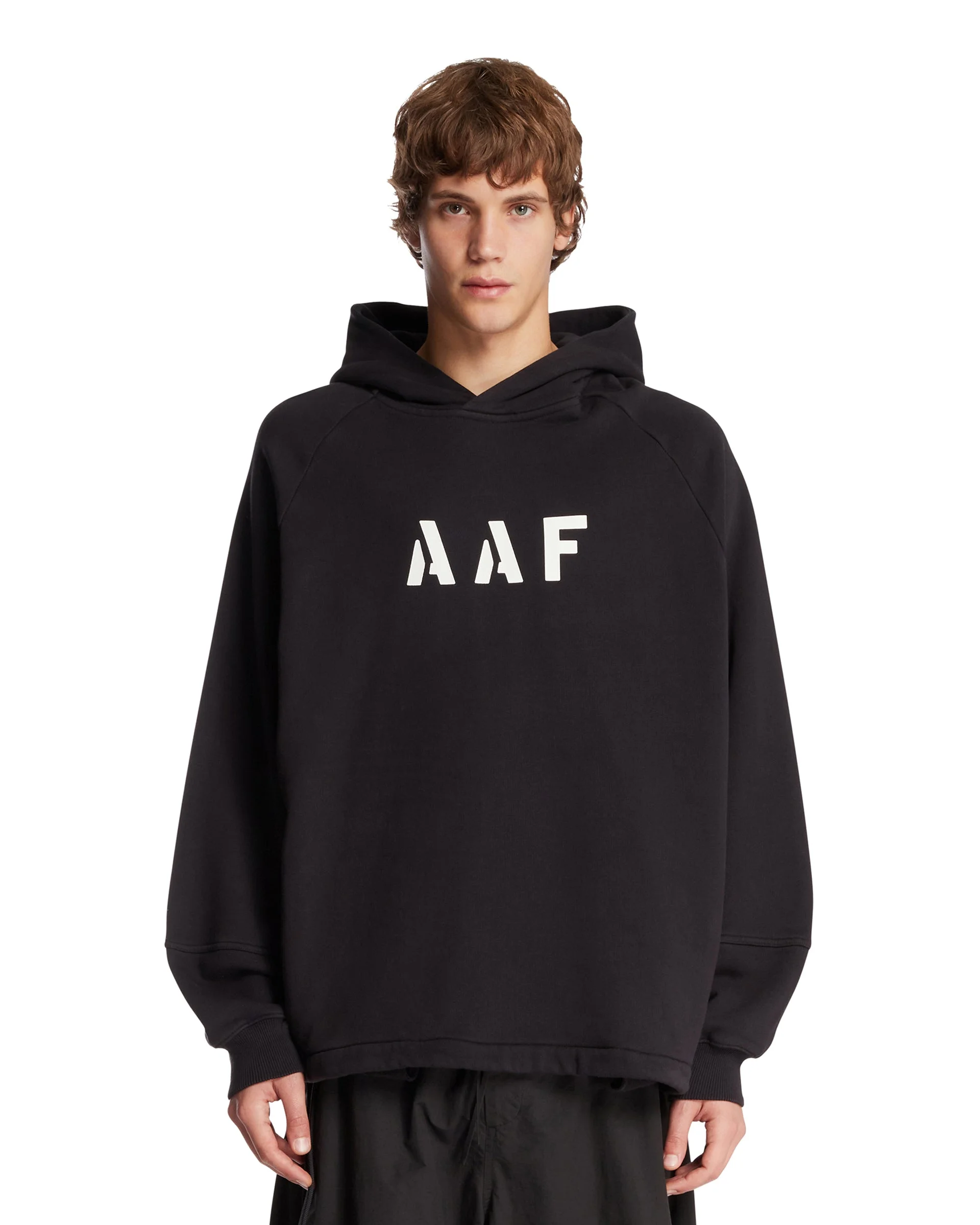 Applied Art Forms Black Hoodie. Black cotton, tone-on-tone hood, long sleeves, logo print on the chest and back in contrast. Straight hem, relaxed fit. Tim is 190 cm and he is wearing size XL. DETAILS Model: D27432D993H684 Composition: 100% Cotton Made in: TURKEY Season: FW25-26