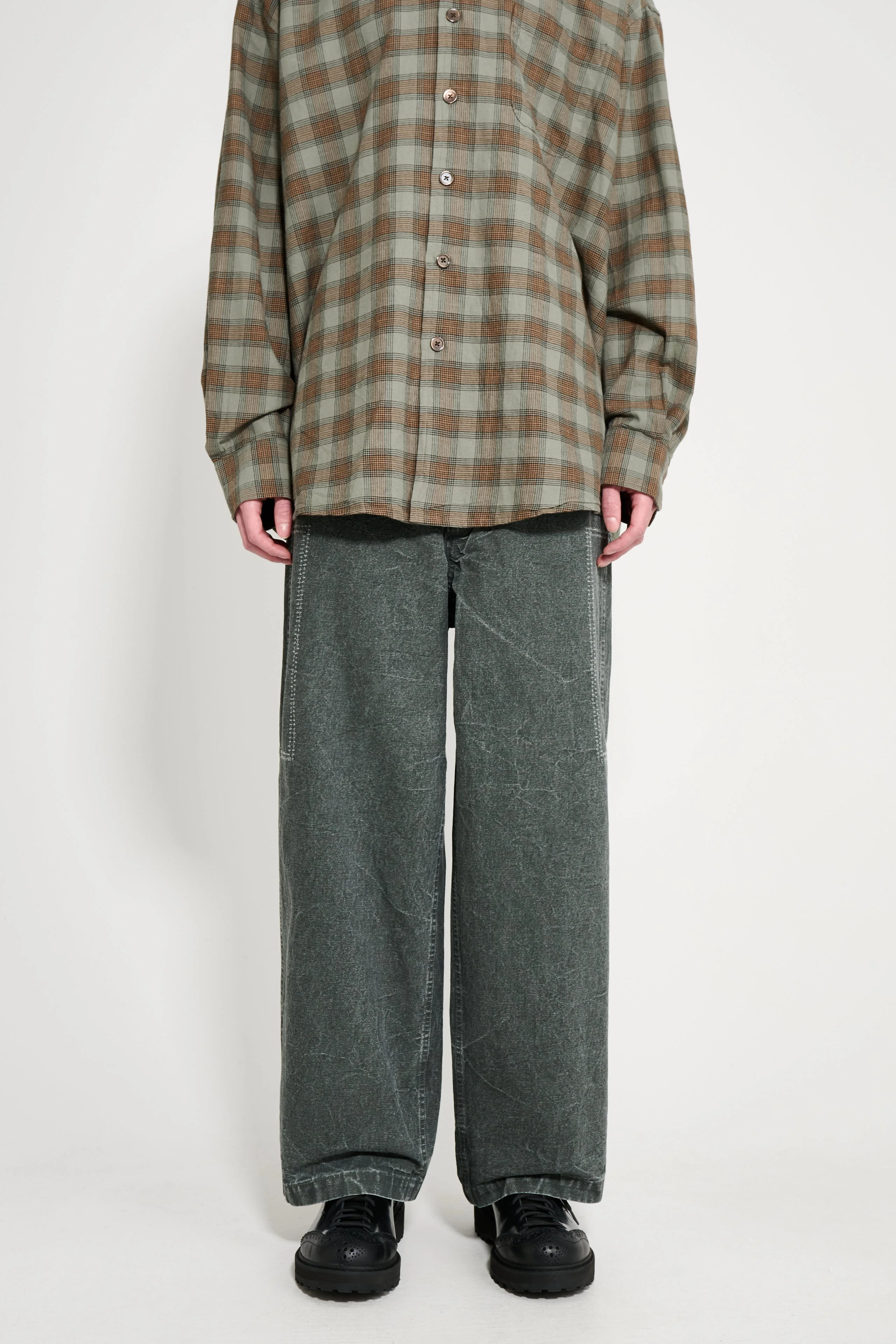Pants from A.PRESSE. Made in Japan from heavyweight cotton canvas with a double-sided pigment coating for a worn, distressed finish. Based on the original M-51 field pants, with an updated design. Features a wide-tapered silhouette with room through the thigh and knee, button and zip waist closure, belt loops, flap front pockets, and two back pockets. Finished with random scuffs and creases from a special treatment process that will continue to evolve with wear. Each pair varies slightly in color, texture, and surface finish. Details Grey pants with a green tone. Made in Japan from 100% cotton.ART. NO: 25AAP-04-26 Size & fit Wide-tapered silhouette. Model wears a size 3 and measures 184 cm with a 60 cm waist.