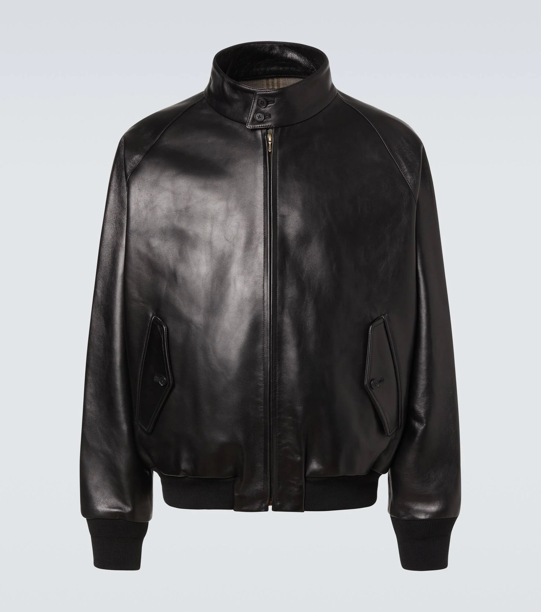 A.Presse takes classic workwear staples to a whole new level with a dash of Japanese flair. This bomber jacket is crafted from lamb leather with a zipped front and elasticated, ribbed trims. Product Details - Material: 100% lamb leather - Care instructions: specialist clean - Made in Japan - Designer color name: Black - Item color: black - Lining: 100% wool - Sleeve lining: 100% cupro - Trim: 95% wool, 4% nylon, 1% polyurethane - Closure: zipped front - Pockets: buttoned pockets, internal pockets - Cuff: ribbed - Hem: ribbed - Item number: P01069479 Size & Fit - True to size - Designed for a loose fit - Elasticated hem - Non-stretchy fabric - Falls to the hip - Height of model is 189cm-74.5" and wears a size 4