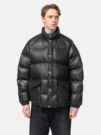 The A.PRESSE Leather Down Jacket reinterprets a 1970s nylon down jacket with premium materials and a modern silhouette. Crafted from PLONGE sheep leather from Spanish highlands, it balances natural luster, firmness, and a fine texture. Filled with Polish white goose down (93% down, 7% feathers) and lined with high-density tussah from Italy, it offers warmth, softness, and durability. Riri zippers and Fiocchi snap buttons complete this elevated take on a classic down jacket. DETAILS - 25AAP-01-58 - Body: 100% Sheep Leather - Lining: 60% Polyester, 40% Cotton - Fill: 93% Down, 7% Feather - Relaxed fit - Raglan sleeve construction - Large baffle construction - Zip closure with snap placket - Riri of Switzerland zippers - FIOCCHI of Italy snaps - Elasticated cuffs - Snap and flap closure patch hand pockets - Made in Japan