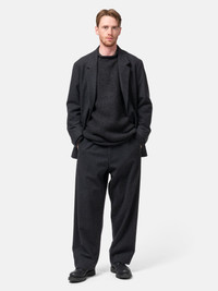 A refined interpretation of the classic flannel trouser, these Wool Flannel Wide Trousers balance relaxed tailoring with understated sophistication. Made from Super 180’s woolen hard flannel—woven to maximum density and gently shrunk—they offer a luxuriously smooth, cashmere-like touch with natural structure and volume. The unlined construction enhances lightness and drape, while the clean, no-pleat design creates a fluid, flattering silhouette. Designed for versatility, they pair effortlessly with tailored jackets or casual outerwear alike. DETAILS - 25AAP-04-14 - 100% Wool - Super 180's wool - Wide, relaxed fit - Unlined - Belt loops - Button front closure with hook fastening - RiRi zipper fly - Double welt hand pockets - Button welt rear pockets - Made in Japan