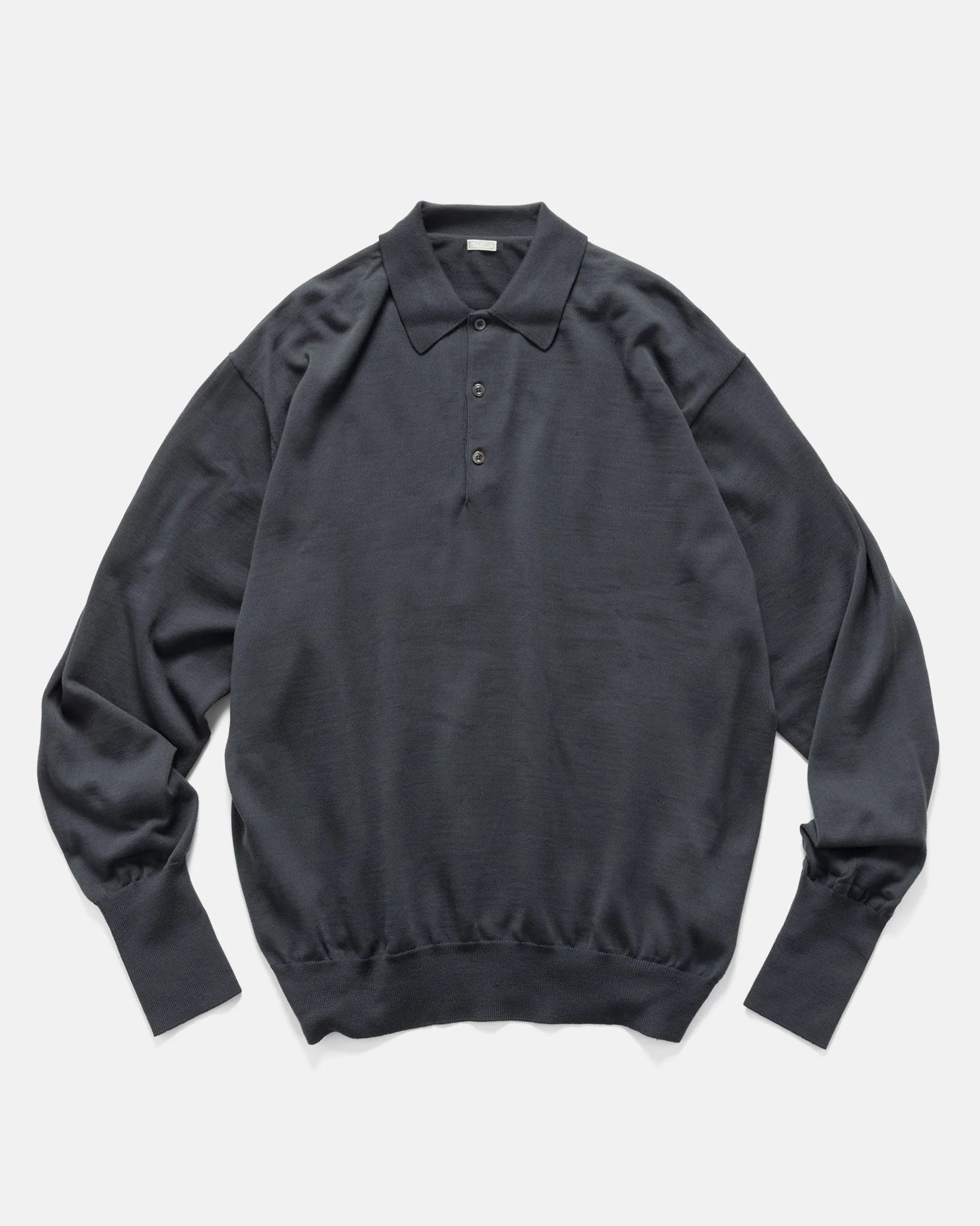 A refined take on the classic polo. The A.PRESSE Wool Knit L/S Polo Shirt blends the elegance of British high-gauge knitwear with relaxed sportswear sensibility. Crafted from ultra-fine 14.5-micron wool, comparable in softness to cashmere, it’s tightly knit at 14-gauge for a smooth, structured feel. A tailored collar, relaxed fit, and snug ribbing at the cuffs and hem create a clean, flattering silhouette. DETAILS - 25AAP-03-08 - 100% Wool - 14.5 micron (super 170's) raw material - Relaxed fit - Polo collar - Button opening - Ribbed cuffs and hem - Made in Japan