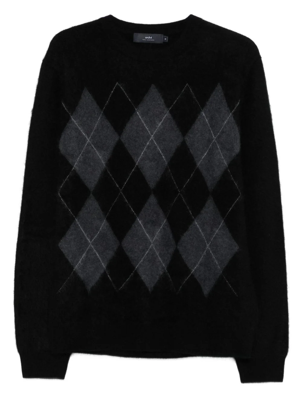 argyle brushed cashmere sweater Highlights - Black - Brushed cashmere - Argyle pattern - Grey detailing - Crew neck - Long sleeves Imported Composition Cashmere 100% SIZE & FIT Model measurements Height 6 ft 2 in(1.87 m) Bust/Chest 36.41 in(92.5 cm) Hips 37 in(94 cm) Waist 29.52 in(75 cm) Washing instructions Dry Clean Only