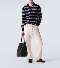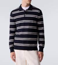 The Mr Swansea polo sweater by Arch4 finishes every look with preppy charm with its striped pattern. Crafted from pure cashmere, the design features a classic collar with a half-buttoned front and a relaxed silhouette. Product Details - Material: 100% cashmere - Care instructions: dry clean - Made in China - Designer color name: Navy/Ivory Stripe - Item color: blue - Collar: polo collar - Closure: partially buttoned front - Hem: ribbed - Cuff: ribbed - Item number: P01077089 Size & Fit - True to size - Straight fit - Slightly stretchy fabric - Falls to the hip - Height of model is 189cm-74.5" and wears a size L