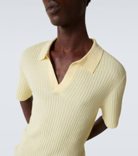 This polo shirt by Arch4 is crafted from lightweight, soft knitted cashmere, blending casual ease with refined style. The design features a V-neck polo collar and a ribbed-knit finish. Product Details - Material: 100% cashmere - Care instructions: dry clean - Made in the UK - Color: yellow - Designer color name: Pale Yel - Item color: yellow - Collar: polo collar - Sleeves: short-sleeved - Item number: P01144517 Size & Fit - True to size - Straight fit - Stretchy fabric - Falls to the hip - Height of model is 192cm-75.5" and wears a size L