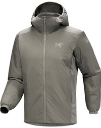 Warm-even-when-wet hoody you can hike, climb, tour, and live in. The Atom Hoody is the solution to your “which jacket should I wear?” problem. Wear it solo for chilly forest hikes with windy summits, climbing at the crag, and hanging at the campsite, or as a midlayer for touring and wet winter objectives. The Coreloft synthetic insulation stays warm even if you run into light weather, making it a better alternative to down for high-output days year round. What's been updated: Updated with a FC0 DWR finish for a lower footprint. Need a lighter option? Try the Atom SL Hoody. Full Product Features Technical features - Moisture-resistant outer face fabric - Breathable - Lightweight - Compressible and packable - Wind resistant - Versatile Construction - Performance stretch fleece side panels give ventilation - Resilient Coreloft™ Compact 60 insulation is breathable, warm, and light, performs if wet, and delivers loft retention that resists packing out - Light, soft Tyono™ 20 is air permeable - Breathable 20D recycled nylon liner helps regulate temperature and is soft and comfortable next to the skin Cuff & Sleeves configuration - Stretch-knit cuffs Design & Fit - Fitted, with articulated patterning for mobility and comfort - Garment Centre Back Length: Size M is 29"/73cm - Varies by size Fabric treatment - FC0 DWR (Durable Water Repellent) finish repels moisture and is PFAS-free Hem configuration - Durable stitched hem with dual adjusters to seal out drafts Hood configuration - Adjustable, insulated, low profile StormHood™ with structured mini hood brim Pocket configuration - Two hand pockets with hidden zippers - Internal chest pocket with zip Sustainability - Contains materials that meet the bluesign® criteria - Contrast - recycled content - Insulation - bluesign® approved material, recycled content - Lining - dope dyed some colours, recycled content - Lining - bluesign® approved material, recycled content - PFAS (Per- and polyfluoroalkyl substances) Compliant Zippers & Fly configuration - No Slip Zip™ front zipper - Custom TPU zipper pulls are easy to operate and glove-friendly Materials - Contrast: Knit Fleece, 215 gsm, polyester with FC0 DWR - 93% Polyester, 7% Elastane - Body: 20dx20d nylon ripstop, FC0 DWR, 45gsm - 100% Nylon - Synthetic Insulation: Coreloft™ 60 (60 g/m²) - 100% Polyester - Lining: 20d recycled nylon ripstop with FC0 DWR, 40gsm - 100% Nylon - Origin of fabric: JAPAN - Origin of dyeing: JAPAN - May release plastic microfibres into the environment when washing
