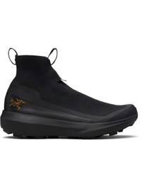 High-top knit sneakers. · Bonded trim throughout · Waterproof GORE-TEX membrane, PFAS-free · Concealed lace-up closure · Logo flag at vamp · Pull-loops at sock-style collar · Logo bonded at outer side · Vibram® Megagrip treaded rubber sole Supplier color: Black/Black Upper: textile. Sole: rubber. Made in Viet Nam 252340M236003
