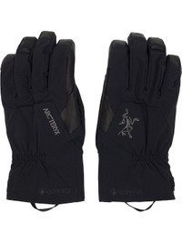 Grained goatskin and plain-woven stretch GORE-TEX nylon gloves. · Insulated, waterproof, and windproof · Certified LWG leather · Logos embroidered at top · Loop at finger and cuffs · Partially elasticized wrist · Velcro tab at cuffs · Fleece lining Supplier color: Black Body 1: 88% nylon, 12% elastane. Body 2: 100% goatskin. Lining: 100% polyester. Made in Viet Nam 252340M135000