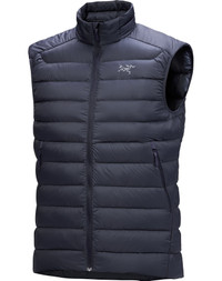 Light, warm down vest shines as an alpine midlayer and cool-weather standalone. This product was previously the Cerium LT Vest. Exceptionally light and warm, the Cerium Vest is ideal insulation for backcountry minimalists. Easily stashed in your pack, it’s instantly available for core warmth as a midlayer in cold, dry conditions or a standalone during rest breaks or at camp. Responsibly-sourced 850 fill down – with Coreloft™ synthetic utilized in areas prone to moisture – provides premium insulation. A bio-derived liner helps reduce petroleum use, and the recycled 15D Arato™ nylon outer is light and durable. A stuff sack’s included for compact transport. Full Product Features Technical features - Moisture-resistant outer face fabric - Breathable - Great warmth-to-weight ratio - Lightweight - Compressible and packable - Wind resistant Collar configuration - Insulated collar - Mid height collar seals out drafts, layers easily under a shell Construction - Down Composite Mapping™ strategically places synthetic insulation in areas where moisture may buildup and down in areas for maximum warmth - 850 fill European white goose down for exceptional warmth-to-weight ratio - Recycled 15D Arato™ outer is light, durable, and coloured with dope dyed yarns - Downproof 20D plant-based Arato™ liner is exceptionally lightweight and reduces petroleum use Design & Fit - Trim fit makes it an ideal layering piece - Garment Centre Back Length: Size M is 29"/72cm - Varies by size Fabric treatment - FC0-DWR (Durable Water Repellent) finish repels moisture Hem configuration - Adjustable hem draw cord seals out drafts Integrated features - Includes stuff sack for compact transport Patterning - Articulated patterning for unrestricted mobility Pocket configuration - Two hand pockets with zippers - Internal zippered security pocket Zippers & Fly configuration - TPU zipper-pulls reduce noise and are easy to grab - Reverse coil centre-front zipper improves durability and creates a streamlined profile Materials - Synthetic Insulation: Coreloft™ 80 (80 g/m²) - 100% Polyester - Down Insulation: 850 fill European white goose down - 100% White Goose Down (minimum 90% down) - Lining: 10D x 20D Ripstop - 100% Nylon - Body: Arato™ 15, recycled N6 microrip, jigger dyed - 100% Recycled Nylon - Origin of fabric: JAPAN - Origin of dyeing: JAPAN - May release plastic microfibres into the environment when washing