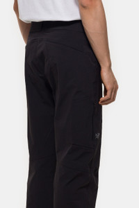 Arc'teryx men’s standard fit black heavyweight nylon plain weave pants. Features an articulated pattern, gusseted crotch, double reinforcement in high stress areas, and a water repellent treatment. Fit - Fits true to size Feature - Articulated pattern - Gusseted crotch - Double reinforcement in high stress area - Water repellent treatment Fabrication - Weight 380g / 13.4 oz SKU: X000010549-002291-30R