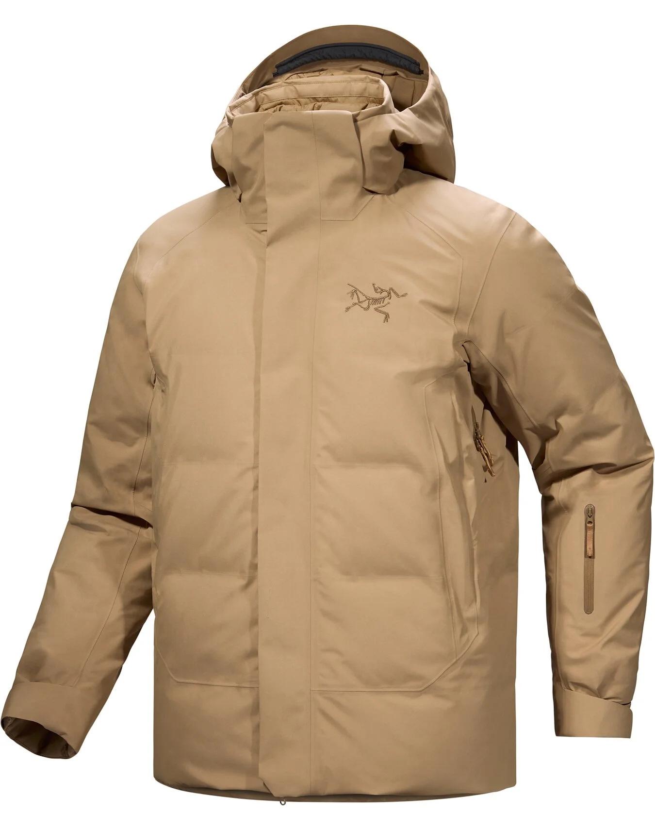 Our pinnacle resort jacket and warmest on-area option. Our pinnacle resort jacket is made for those days the weather sends others inside. Packed with 750-fill goose down and wrapped with proven GORE-TEX weather protection, it’s warm and dry. The insulated removable hood has integrated collar to wrap your head and neck for added warmth and protection, and the bonded baffle design eliminates cold spots. Multiple pockets provide storage, a powder skirt seals out driven snow, and the clean design is patterned for freedom of movement. Full Product Features Technical features - Waterproof - Windproof - Breathable - Great warmth-to-weight ratio - Durable Collar configuration - Soft, warm integrated down-insulated collar wraps the neck and seals out drafts Construction - GORE C-KNIT™ backer technology is light, soft and comfortable - Down Composite Mapping™ uses 750 fill down for premium warmth plus strategic use of synthetic insulation in moisture heavy areas - Stitch-free bonded baffle construction adds durability, improves GORE-TEX integrity - 750 fill power European grey goose down provides lightweight, efficient warmth and is RDS (Responsible Down Standard) certified - PFAS-free GORE-TEX ePE with a recycled face delivers complete waterproof, windproof, breathable protection Design & Fit - Regular fit provides freedom of movement with room for layers - Garment Centre Back Length: Size M is 30"/77cm - Varies by size Fabric treatment - FC0 DWR (Durable Water Repellent) finish repels moisture and is PFAS-free Hood configuration - Removable hood - Insulated, adjustable hood - Helmet compatible Patterning - Snowsport-specific articulated patterning for mobility and comfort Pocket configuration - Internal chest pocket - Two internal dump pockets - Two zippered hand warmer pockets - Zippered sleeve pocket for RFID pass Snowsport features - Detachable powder skirt - RECCO® reflector aids search and rescue in emergency situations - Integrated powder skirt seals out snow Sustainability - Shell - bluesign® approved material, dope dyed backer, recycled content - Padding - bluesign® approved material, recycled content - RDS (Responsible Down Standard) - 100% of our down is certified to the RDS by IDFL (No.TE-99950273) - Feather - This product contains feather not exceeding that allowable by law - PFAS (Per- and polyfluoroalkyl substances) Compliant Zippers & Fly configuration - Pit zippers with PowderGuard™ mesh backing, for easy venting without snow entry - Storm flap on front zipper helps prevent rain and wind entry Materials - Down Insulation: 750 fill European grey goose down - 100% Grey Goose Down (minimum 90% down) - Lining: 20dx20d nylon ripstop w/DWR, 45gsm - 100% Nylon - Synthetic Insulation: Coreloft™, 100gsm - 100% Polyester - Body: 80d 3L GORE-TEX ePE with C-KNIT™ backer, plain weave recycled nylon, FC0 DWR - 100% Nylon with ePE and PU Membrane - Origin of fabric: CHINA - Origin of dyeing: CHINA - May release plastic microfibres into the environment when washing