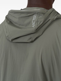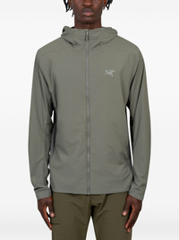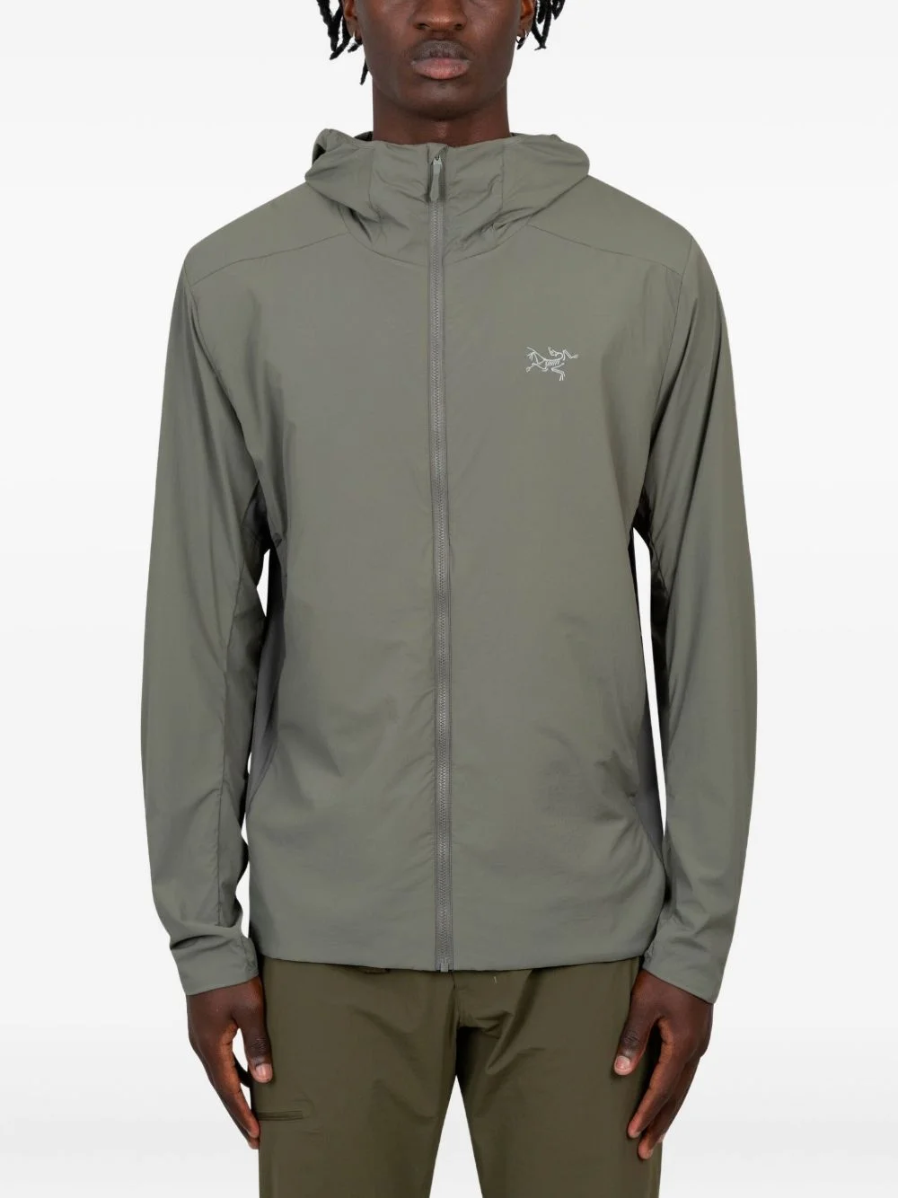 hooded zip-front coat Highlights - Grey - Front zip fastening - Hooded neck - Long sleeves - Small logo print Imported Composition Nylon 88%, Elastane 12% Washing instructions Read Manufacturer Guidelines