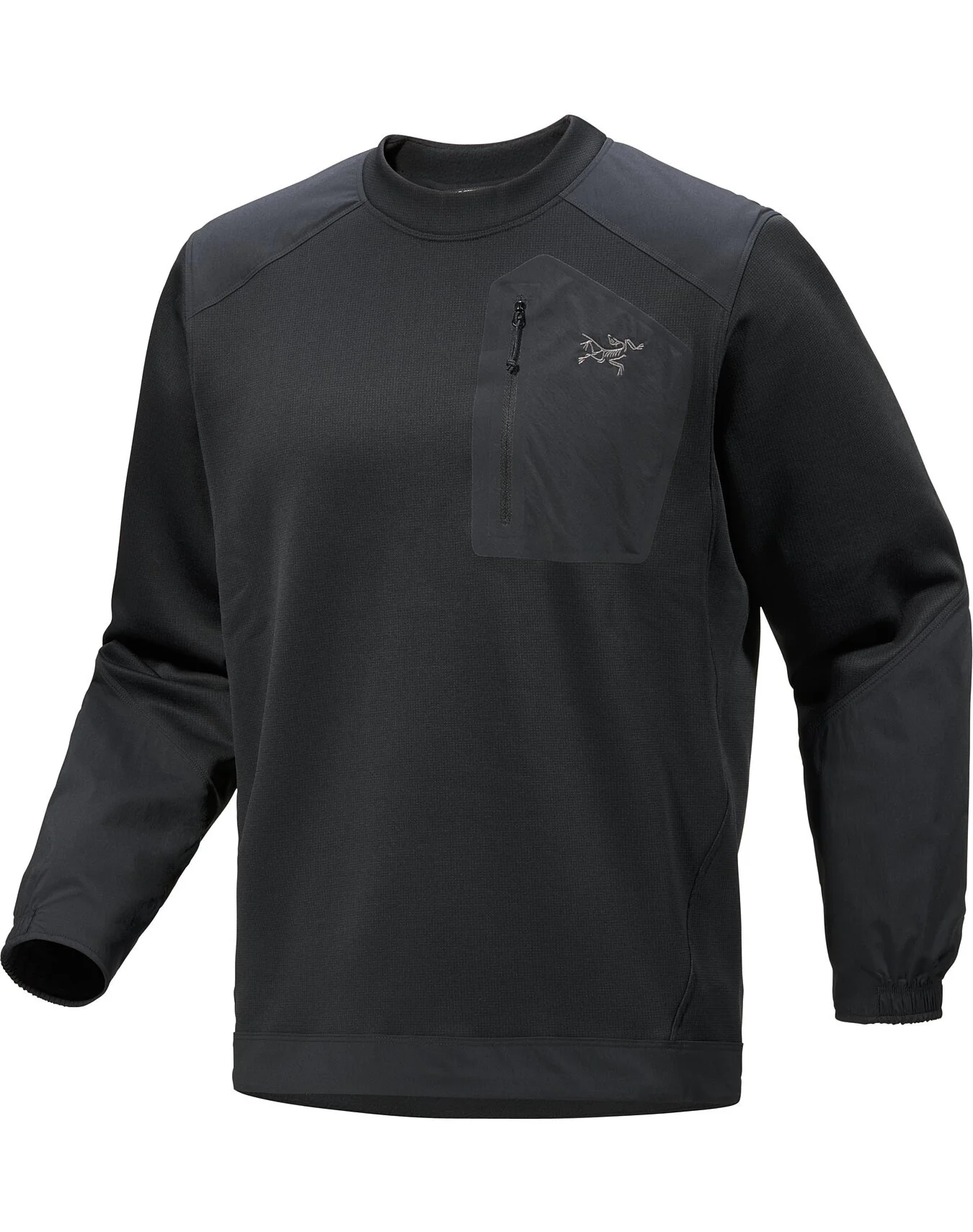 Climber’s pullover fleece with enhanced abrasion resistance. The Konseal Crew is for cool days climbing. Made from 73% recycled polyester, its Polartec Power Air Hardface fleece provides breathable warmth with a smooth, durable face that resists pilling and wear. Abrasion-resistant stretch nylon reinforces high-wear areas. Articulation frees you to move, and the features are minimalist – an easily accessible zippered pocket at the chest, adjustable hem, PFAS-free water-repellency – to keep the design streamlined so you can climb without distraction. Full Product Features Technical Features - Breathable - Durable - Abrasion resistant - Warm and comfortable Construction - Polartec® Power Stretch® fleece with Hardface® Technology is warm, feels soft, and has a smooth, durable nylon face that resists abrasion and layers easily - Stretch nylon reinforcements at the shoulders, lower arm, and waist enhance abrasion resistance Design & Fit - Relaxed fit for comfort and easy layering Fabric Treatment - FC0 DWR (Durable Water Repellent) finish repels moisture and is PFAS-free Hem Configuration - Adjustable hem draw cord seals out drafts Patterning - Articulated patterning for unrestricted mobility - Gusseted underarms for mobility and comfort Pocket Configuration - Zippered patch pocket at the chest secures small essentials Sustainability - Contains materials that meet the bluesign® criteria - PFAS (Per- and polyfluoroalkyl substances) Compliant Materials - Body: Power Stretch w/Hardface Jersey Velour - 88% Polyester, 12% Elastane - Contrast: Nylon/spandex plain weave w/DWR, 112gsm - 93% Nylon, 7% Elastane - Origin of fabric: UNITED STATES - Origin of dying: UNITED STATES - May release plastic microfibres into the environment when washing