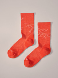 Thermoregulation and targeted cushioning – our all-mountain Merino-blend sock. Light, soft, and breathable, these socks give you targeted cushioning, technical performance, and natural comfort on runs, hikes, and approaches. Ultra-fine yarns blend Merino wool – a material known for natural odour resistance and thermal management – with nylon for added durability. The construction delivers exceptional fit, support, aligns with the fit of our shoes, and helps prevent slipping and bunching. The mid-height collar provides protection and helps seal out trail debris. Full Product Features Technical Features - Breathable - Lightweight - Durable Construction - Ultra fine Merino wool is known for soft comfort, natural temperature regulation, moisture management, and odour resistance - The tall collar helps seal out grit and trail debris - 200-needle Merino fibres are plaited with nylon to combine wool’s natural performance with added durability - Targeted cushioning, mesh zones, and ribbed arch support provide comfort and breathability Logos & Label Configuration - Arc'teryx word logo - Arc'teryx Bird logo Sustainability - Wool is sourced from humanely raised, non-mulesed sheep - PFAS (Per- and polyfluoroalkyl substances) Compliant Materials - Self: 48% Nylon, 48% Wool, 4% Elastane
