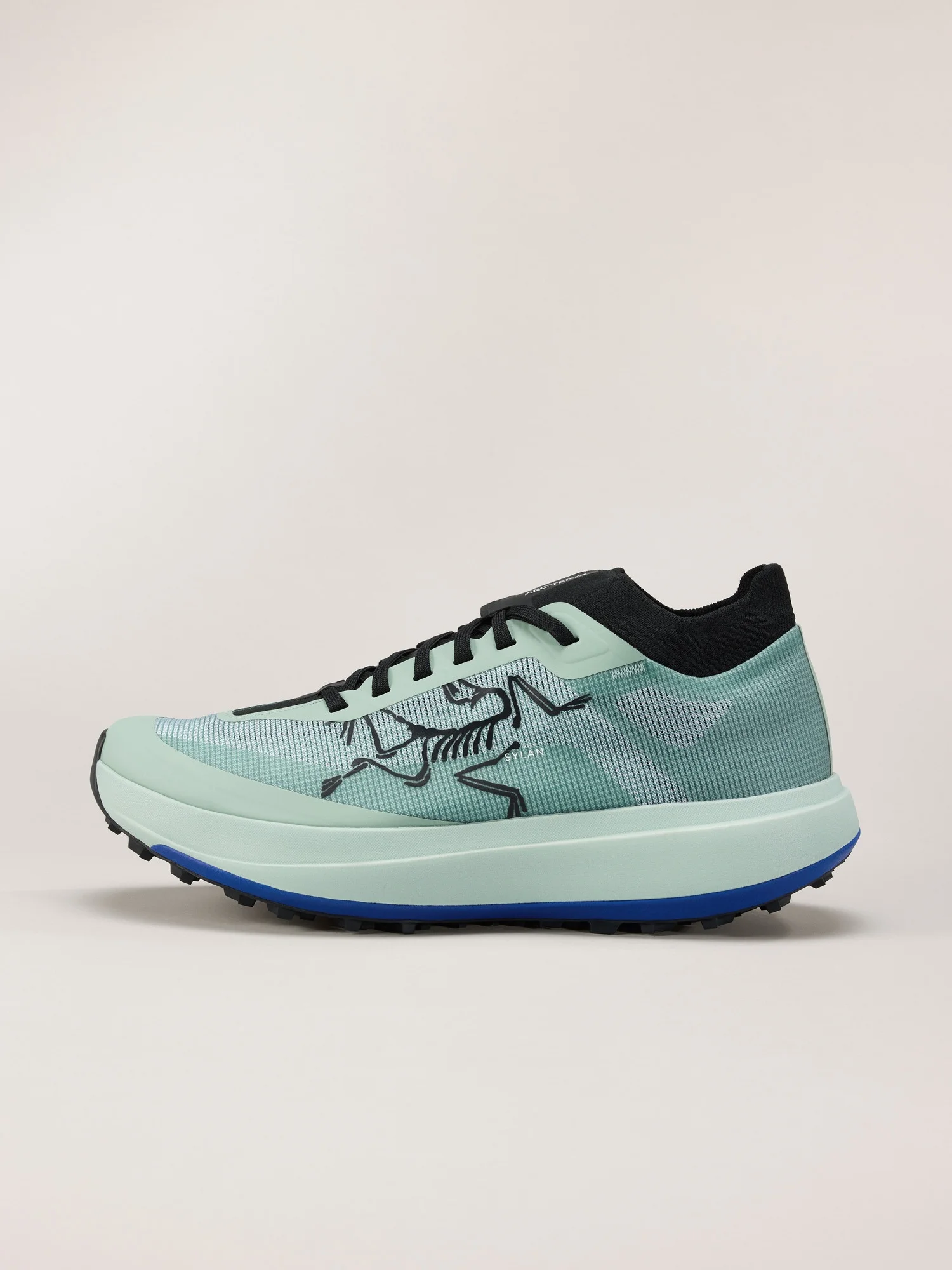 Breathable, comfortable mountain running shoe designed for maximizing speed. Athlete-inspired and built for speed, this is the shoe for mountain runners looking to move faster on technical trails. The midsole’s rocker geometry drives propulsion and is made from InFuse, a light, highly responsive EVA and Polyolefin composition that provides rebound and absorbs shock. The grippy Vibram Megagrip outsole uses LITEBASE technology to shed weight without sacrificing performance, and aggressive lugs deliver a confident bite. The fit locks tight, and a knit collar seals out debris. Full Product Features Technical features - Breathable - Lightweight - Abrasion resistant Footwear construction - Integrated tongue pocket tucks away laces to prevent snags and untying - Matryx® Micro upper weaves PU-coated recycled polyester fibres wrapped around a nylon core to deliver outstanding durability, fit, flex, and breathability for minimal weight - Knit collar seals out debris and integrates with the tongue to create a secure, comfortable sock-like fit - Extended U-throat construction provides more flex, better breathability, greater comfort - Midsole’s rocker geometry aids propulsion - Lightweight, responsive InFuse® EVA and Polyolefin midsole absorbs shock and is highly responsive Footwear geometry - Deep, wide 6mm lug pattern provides grip on wet, muddy trails - Lug pattern is patterned for grip on steep ascents and descents - Offset (Stack height): 6mm (28.6mm : 22.6mm) Footwear outsole construction - Vibram® Megagrip outsole delivers durable, surefooted performance across a range of conditions - LITEBASE technology reduces the overall sole weight through a reduction of the sole thickness to shed weight without sacrificing performance Materials - Lining: Textile - Insole: Textile - Outsole: Rubber