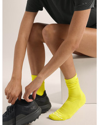 Focused cushioning, breathability, and support in an all-mountain mid-height sock. Running, hiking, discovering new places – this all-mountain sock is made from a blend of performance yarns for comfort, temperature management, and climate control while you're on the move. Designed for durability and performance, it has reinforced cushioning in high-friction areas, a targeted grid construction at the arch for enhanced breathability and added support, and a mid-height collar to help keep out grit and trail debris. Full Product Features Technical Features - Breathable - Durable - Versatile Construction - Made from a blend of performance yarns for comfort, temperature management, and climate control - Reinforced cushioning in high friction areas, with targeted grid construction at the arch for breathable comfort and added support - The tall collar helps seal out grit and trail debris Design & Fit - Full-coverage sock for long trail runs and a range of mountain adventures. Sustainability - PFAS (Per- and polyfluoroalkyl substances) Compliant Materials - Self: 71% Polyester, 26% Nylon, 3% Elastane