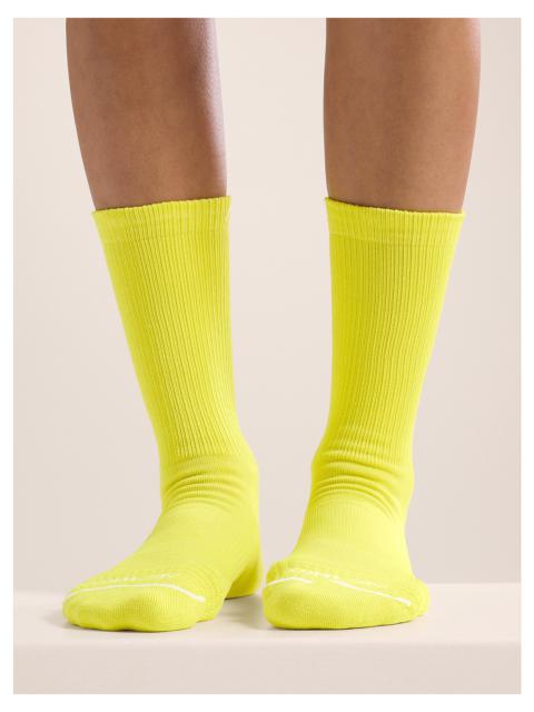 Focused cushioning, breathability, and support in an all-mountain mid-height sock. Running, hiking, discovering new places – this all-mountain sock is made from a blend of performance yarns for comfort, temperature management, and climate control while you're on the move. Designed for durability and performance, it has reinforced cushioning in high-friction areas, a targeted grid construction at the arch for enhanced breathability and added support, and a mid-height collar to help keep out grit and trail debris. Full Product Features Technical Features - Breathable - Durable - Versatile Construction - Made from a blend of performance yarns for comfort, temperature management, and climate control - Reinforced cushioning in high friction areas, with targeted grid construction at the arch for breathable comfort and added support - The tall collar helps seal out grit and trail debris Design & Fit - Full-coverage sock for long trail runs and a range of mountain adventures. Sustainability - PFAS (Per- and polyfluoroalkyl substances) Compliant Materials - Self: 71% Polyester, 26% Nylon, 3% Elastane