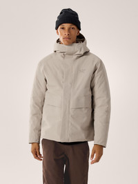 Waterproof down jacket with a refined aesthetic for cold, wet conditions. Minimalist design lines. Maximum weather protection. The Therme Down Jacket fuses a refined aesthetic with the technical construction of a tried-and-true Arc'teryx hardshell. Built for wet-weather rambles and trips around town, its GORE-TEX ePE material and adjustable StormHood™ shield from wind chill and downpours. Soft, lightweight goose down seals your body in warmth, keeping you comfortable from office to apres. Full Product Features Technical features - Waterproof - Windproof - Breathable Construction - Down Composite Mapping™ strategically places synthetic insulation in areas where moisture may buildup and down in areas for maximum warmth - 750 fill power European grey goose down provides lightweight, efficient warmth and is RDS (Responsible Down Standard) certified - GORE-TEX ePE for durable weather protection, made with recycled content and free from intentionally added PFAS - Canvas-like face fabric for a rugged look and soft hand feel Cuff & Sleeves configuration - Stretch-knit cuffs Design & Fit - Regular fit provides freedom of movement with room for layers - Garment Centre Back Length: Size M is 30"/75cm - Varies by size Fabric treatment - DWR (Durable Water Repellent) finish repels moisture and is PFAS-free Hem configuration - Adjustable hem draw cord seals out drafts Hood configuration - Adjustable, insulated StormHood™ - Coreloft-insulated StormHood™ provides added warmth even if wet Patterning - Articulated patterning for unrestricted mobility Pocket configuration - Two concealed zippered hand pockets - Chest pocket - Internal chest pocket with zip - Two external dump pockets Sustainability - Shell - bluesign® approved material, dope dyed backer, recycled content - Lining - bluesign® approved material, recycled content - RDS (Responsible Down Standard) - 100% of our down is certified to the RDS by IDFL (No.TE-99950273) - Feather - This product contains feather not exceeding that allowable by law - PFAS (Per- and polyfluoroalkyl substances) Compliant - Padding - bluesign® approved material Zippers & Fly configuration - Full-length two-way separating side zips make on-and-off easy Materials - Down Insulation: 750 fill European grey goose down, min 90/10, RDS - 100% Grey Goose Down (minimum 90% down) - Lining: 20d recycled nylon downproof ripstop, 42gsm w/FC0 DWR - 100% Nylon - Synthetic Insulation: Coreloft™ Silver Insulation with PURE Technology, 100gsm - 100% Polyester - Body: 2L GORE-TEX ePE 200d recycled nylon, 190 gsm, C0 DWR - 100% Nylon with ePE and PU Membrane - Origin of fabric: CHINA - Origin of dyeing: CHINA - May release plastic microfibres into the environment when washing