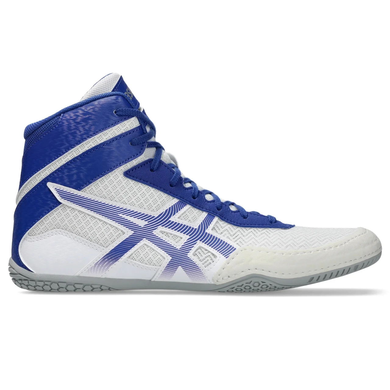 Designed for wrestlers seeking a shoe that offers a blend of support and durability, the MATCONTROL™ 3 wrestling model is a versatile offering that transitions from practice to matches. Built with reliable flexibility in mind, this shoe features a flexible upper construction that moves with the natural motion of the foot without sacrificing support. Complemented with a shoelace garage in the eyestay, this component helps laces to stay tucked and tied during matches. Additionally, the shoe includes a medial side support unit for better stability during various moves. Functional for improving traction on mat surfaces, the shoe also incorporates flexion grooves in the outsole for better flexibility. Style #: 1081A053.103 UPC #: None Tech & Materials Flexion grooves in the outsole Improve flexibility Shoelace garage Keeps the laces concealed Solution dye sockliner helps reduce overall water usage by approx. 33% and carbon emissions by approx. 45%