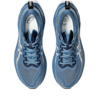 Move from feeling standard to super in the SUPERBLAST™ 2 shoe. It's designed to help provide the most responsive, energized feel compared to other shoes in the ASICS® cushioning range. The midsole features a combination of FF BLAST™ PLUS and FF TURBO™ PLUS cushioning. Also used in our METASPEED™ racing models, this foam helps creates one of the lightest and bounciest running experiences. This shoe's upper construction features an asymmetric mesh design. It features different colors on the medial and lateral angles of the shoe for visual interest. Style #: 1013A142.402 UPC #: None Tech & Materials Engineered mesh upper material Improves airflow to help your feet keep cool Gusseted tongue wing fit system Improves the midfoot fit and reduces tongue sliding FF TURBO™ PLUS technology Cushioning improves compression and creates a responsive feel underfoot FF BLAST™ PLUS technology Cushioning provides lightweight impact absorption and a responsive rebound Trampoline-inspired outsole design Provides a more responsive bounce back AHARPLUS™ heel plug rubber Improves the outsole durability The sockliner is produced with the solution dyeing process that reduces water usage by approximately 33% and carbon emissions by approximately 45% compared to the conventional dyeing technology Reflective details Designed to improve visibility in low-light settings ASICSGRIP™ outsole rubber Provides advanced grip for various terrains