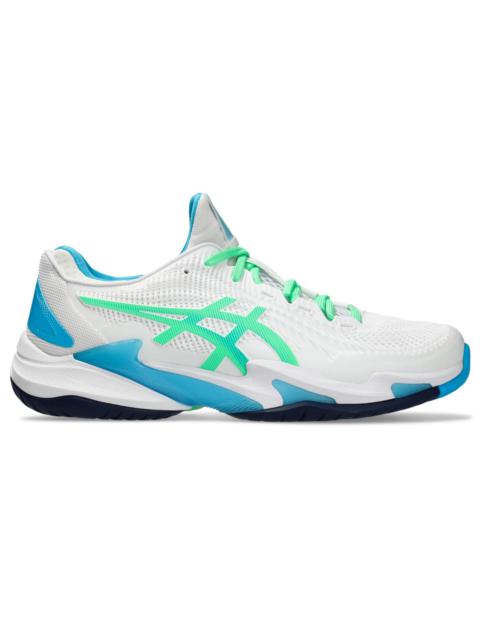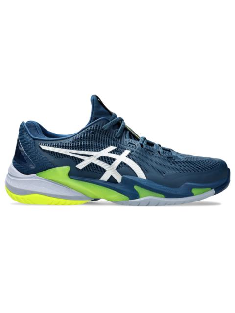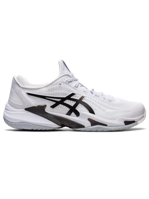 The COURT FF™ 3 tennis shoes are designed to help you swing stronger and recover quicker between shots. It creates a stable landing and reduces the load placed on the body. As a result, you’re able to put more energy into generating a powerful swing. For a smoother crossover step, this shoe allows you to perform quicker turns in a shorter timeframe. With good outsole grip and a TWISTRUSS™ support system, you can push off the ground with more force. This helps you quickly recover and get back to your ready position more smoothly. Style #: 1041A370.100 UPC #: None Tech & Materials FLYTEFOAM® technology Provides lightweight cushioning and impact absorption Forefoot GEL® technology Improves impact absorption and creates a softer feeling at footstrike TWISTRUSS™ technology Improves quickness and cutting motions PGUARD® technology Helps increase durability in the outsole's toe and heel area MONO-SOCK™ construction Helps improve stability AHAR®PLUS™ rubber outsole Improves durability The sockliner is produced with the solution dyeing process that reduces water usage by approximately 33% and carbon emissions by approximately 45% compared to the conventional dyeing technology