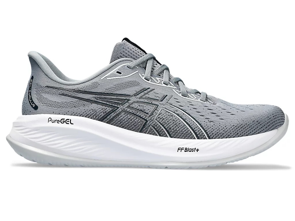 Experience a soft feel underfoot with the GEL-CUMULUS® 26 shoe. This neutral everyday trainer is a versatile choice for various running workouts and distances. FF BLAST™ PLUS cushioning and PureGEL® technology are strategically positioned in the midsole. These materials help create softer landings and a more energized toe-off during your training. Style #: 1011B792.020 UPC #: 197298197328 Tech & Materials FF BLAST™ PLUS technology Cushioning provides lightweight impact absorption and a responsive rebound PureGEL® technology . Helps provide lightweight cushioning and softer landings Engineered mesh upper Helps improve breathability and comfort The sockliner is produced with the solution dyeing process that reduces water usage by approximately 33% and carbon emissions by approximately 45% compared to the conventional dyeing technology At least 75% of the shoe's main upper material is made with recycled content to reduce waste and carbon emissions OrthoLite™ X-30 sockliner Provides soft step-in comfort