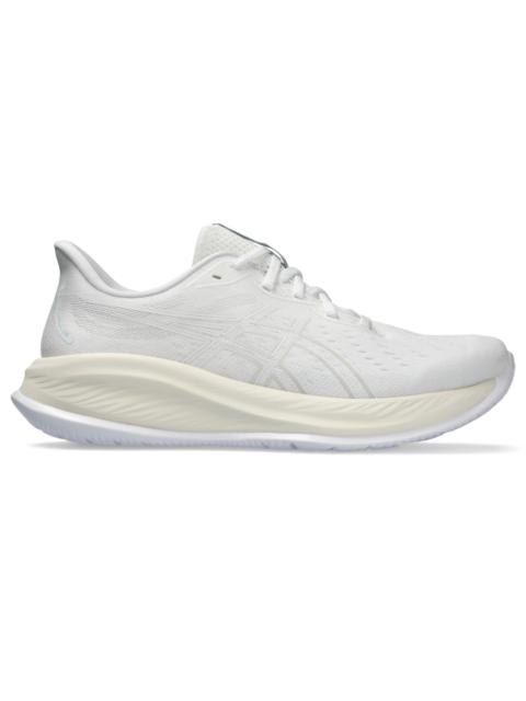 Experience a soft feel underfoot with the GEL-CUMULUS® 26 shoe. This neutral everyday trainer is a versatile choice for various running workouts and distances. FF BLAST™ PLUS cushioning and PureGEL® technology are strategically positioned in the midsole. These materials help create softer landings and a more energized toe-off during your training. Style #: 1011B792.403 UPC #: 197298506816 Tech & Materials FF BLAST™ PLUS technology Cushioning provides lightweight impact absorption and a responsive rebound PureGEL® technology . Helps provide lightweight cushioning and softer landings Engineered mesh upper Helps improve breathability and comfort The sockliner is produced with the solution dyeing process that reduces water usage by approximately 33% and carbon emissions by approximately 45% compared to the conventional dyeing technology At least 75% of the shoe's main upper material is made with recycled content to reduce waste and carbon emissions OrthoLite™ X-30 sockliner Provides soft step-in comfort