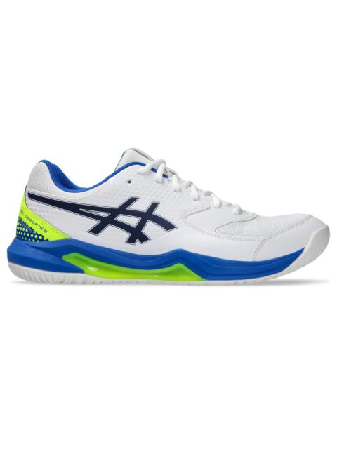 The GEL-DEDICATE® 8 Pickleball pickleball shoe offers good stability and a flexible feel to keep your mind centered during the match. This shoe's upper is constructed with synthetic leather overlays to improve support. They keep your feet locked-in when you're switching directions and chasing down challenging shots. A TRUSSTIC® support unit and wrap-up outsole improve stability while allowing your feet to move freely. This lets you change directions more confidently, particularly if you're moving side-to-side. Style #: 1041A409.020 UPC #: 197298445764 Tech & Materials Durable synthetic leather toe overlays Solution dye sockliner helps reduce overall water usage by approx. 33% and carbon emissions by approx. 45% TRUSSTIC® technology and wrap-up outsole Improve stability GEL® technology cushioning Provides excellent shock absorption