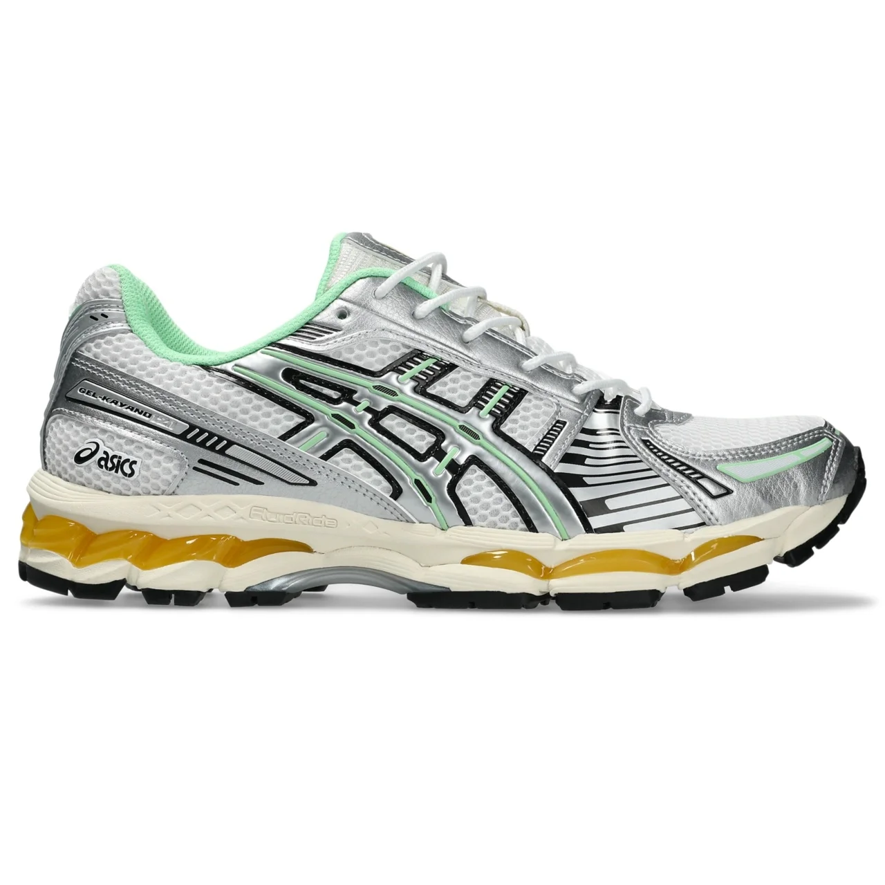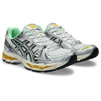 Co-created with KITH, the GEL-KAYANO® 12.1 sneaker combines iconic design details from the version that launched in 2006 and combines them with a modern tooling system. This design's upper was inspired by European gothic armor and it's structural, metallic properties. Meanwhile, its open mesh underlays help improve airflow to keep feet cool. The midsole features the same tooling system from the GEL-NIMBUS® 17 shoe. It was originally engineered for comfort during the duration of marathons, featuring dual GEL® technology inserts and a FLUIDRIDE™ cushioning structure. Style #: 1203A827.100 UPC #: None Tech & Materials Co-created with KITH Inspired by the GEL-KAYANO® 12 running shoe from 2006 Breathable mesh underlays GEL-NIMBUS®17 tooling system FLUIDRIDE™ technology Helps create a smooth feel underfoot Rearfoot and forefoot GEL® technology Improves impact absorption Dope dyed recycled sockliner mesh