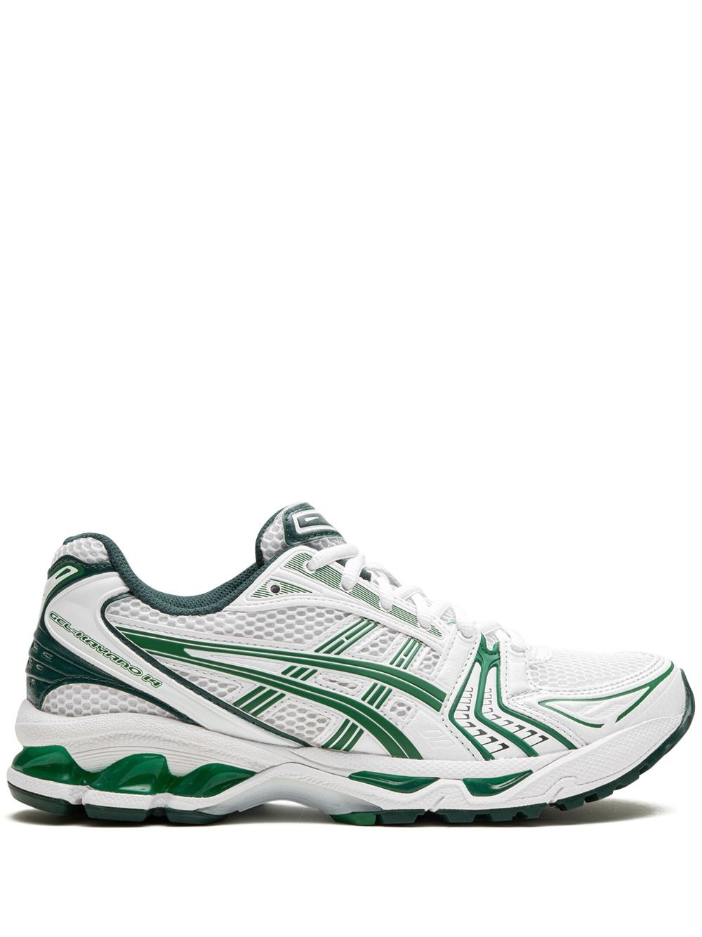 Gel-Kayano 14 "Leprechaun" sneakers A running silhouette, the GEL-Kayano 14 pairs a sleek, low-top silhouette with mesh detailing for a breathable design. Underfoot, GEL technology adds cushioned support to the style for added wearability. Highlights - White/dark green - Calf leather - Mesh panelling - Gel® technology - Round toe - Front lace-up fastening - Logo patch at the tongue - Branded insole - Rubber sole - These styles are supplied by a premium sneaker marketplace. stocking only the most sought-after footwear, they source and curate some of the most hard to find sneakers from around the world. Imported Composition Sole: Rubber 100% Outer: Calf Leather 100%, Mesh 100% Lining: Fabric 100%
