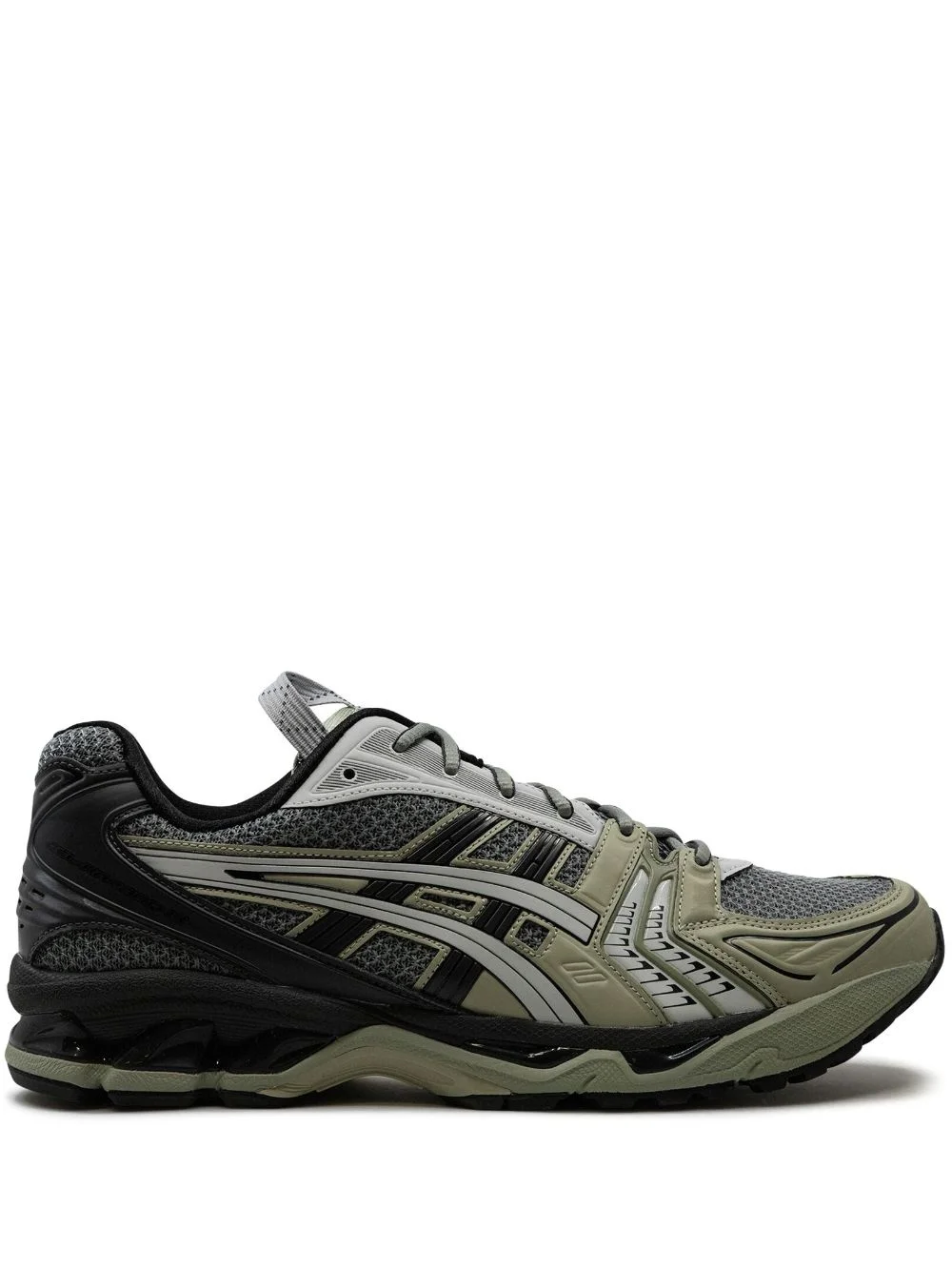 Gel Kayano 14 " Piedmont Grey" sneakers Asics's Gel Kayano 14 running shoes first debuted in 2008. Their panelled silhouette features mesh panels and a chunky rubber sole for breathability and comfort. This iteration arrives in muted hues of khaki, grey and black. Highlights - Grey/khaki/black - Panelled design - Mesh panels - Pull-tab at the tongue - Front lace-up fastening - Round toe - Flat rubber sole - These styles are supplied by a premium and authenticated sneaker marketplace. stocking only the most sought-after footwear, they source and curate some of the most hard to find sneakers from around the world. Imported Composition Other fibres 100% SIZE & FIT Measurement HEEL 1.57 in(4 cm) Sole height 0.98 in(2.5 cm)