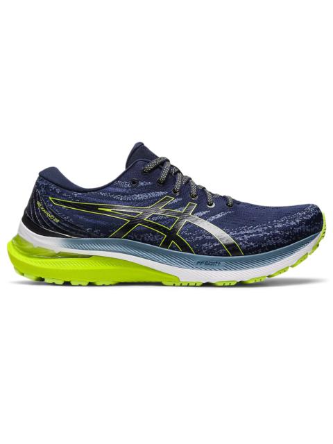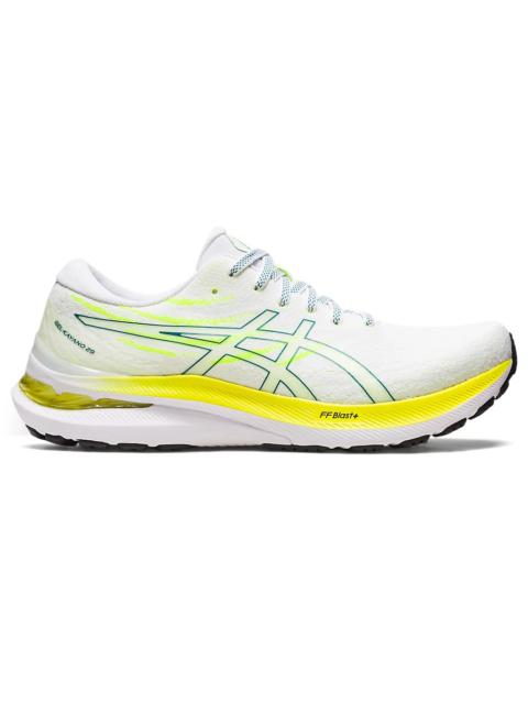 The GEL-KAYANO® 29 shoe creates a stable running experience and a more responsive feel underfoot. Featuring a low-profile external heel counter, this piece comfortably cradles your foot with advanced rearfoot support. We also updated the midsole with FF BLAST™ PLUS cushioning. This helps keep the shoe lightweight while creating a more energized rebound in each step. A LITETRUSS™ stability feature is placed on the midsole’s inside angle. It’s designed to help keep your foot from rolling too far inward during your stride. Style #: 1011B440.101 UPC #: 196074403035 Tech & Materials Engineered knit upper Improves breathability. At least 50% of the shoe’s main upper material is made with recycled materials to reduce waste and carbon emissions The sockliner is produced with the solution dyeing process that reduces water usage by approximately 33% and carbon emissions by approximately 45% compared to the conventional dyeing technology Redesigned external heel counter Helps keep the foot stable and provide a more comfortable stride. LITETRUSS™ technology Improves medial support and midfoot integrity. 3D SPACE CONSTRUCTION™ feature Improves compression at footstrike. Rearfoot GEL™ technology cushioning Provides good shock absorption. FF BLAST™ PLUS cushioning Provides lightweight impact absorption and a responsive rebound. OrthoLite™ X-55 sockliner Improves comfort. Reflective details Improve visibility. AHARPLUS™ heel plug Improves the outsole durability.