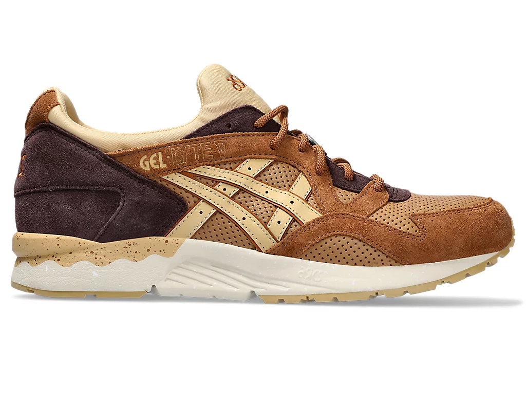 This GEL-LYTE® V sneaker draws inspiration from the Japanese phrase "Godai," and how it references the five elements in Japanese philosophy. This shoe's upper construction is designed with leather, nubuck, and suede overlays. Each colorway is rendered with different color palettes that reflect the physical properties of the five elements: Fire, Water, Earth, Void, and Wind. The shoes are also accented with a coin dubrae that's embossed with the Japanese symbol for the element that its colorway represents.The tooling retains its wavy design from when it first hit the running market in 1993. This design's midsole construction also features at least 20% recycled materials to support more sustainable manufacturing. Style #: 1203A282.250 UPC #: 196074950287 Tech & Materials MONO-SOCK® construction Rearfoot GEL™ technology For comfort in everyday scenarios At least 20% of the shoes midsole is made with recycled materials Each colorway features a coin dubrae that's embossed with the element that it represents Uppers are designed with elevated materials, like nubuck, suede, and leather overlays