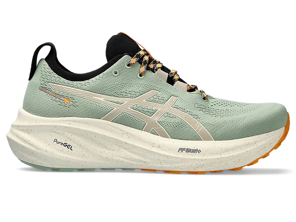 The GEL-NIMBUS® 26 TR shoe's soft cushioning properties help you feel like you're landing on clouds. It's also designed with a trail-specific outsole that's functional for running on off-road surfaces. A soft engineered knit upper comfortably wraps your foot while supplying advanced ventilation. Additionally, the updated knit collar and midfoot fit help provide a more comfortable feel. By using FF BLAST™ PLUS ECO cushioning, this trainer creates a lighter and softer cushioning experience with less of an impact on the environment. Style #: 1011B849.250 UPC #: 197298168212 Tech & Materials Engineered knit upper Wraps the foot with a soft feel while improving breathability At least 75% of the shoe's main upper material is made with recycled content to reduce waste and carbon emissions The sockliner is produced with the solution dyeing process that reduces water usage by approximately 33% and carbon emissions by approximately 45% compared to the conventional dyeing technology PureGEL® technology Helps provide lightweight cushioning and softer landings FF BLAST™ PLUS ECO technology Cushioning creates a softer landing and a more responsive toe-off OrthoLite™ X-55 sockliner Improves step-in comfort Reflective details Designed to improve visibility in low-light conditions Trail-specific outsole design Functional for road and groomed trail surfaces