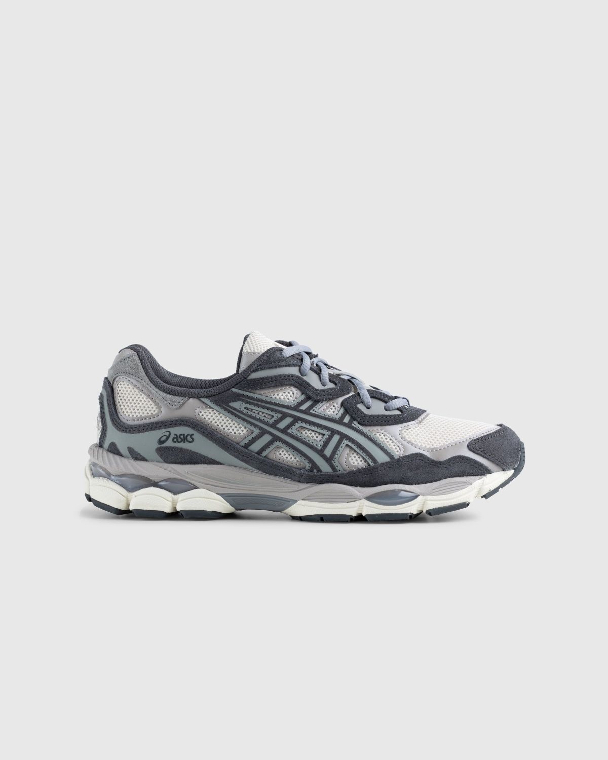 Following the success of the recent collab with AWAKE NY, the GEL-NYC™, designed by Angelo Baque and his team, has officially been inducted into the ASICS family. The new shoe takes several references from earlier ASICS sneakers and combines elements from early GEL-NIMBUS 3 models as well as accents from other sneakers in the brand’s growing roster of high-performance silhouettes. Size & Fit Order your regular size. Product Details Suede and leather upper. Breathable mesh underlays. Rearfoot GEL technology cushioning provides advanced shock absorption. Solid rubber outsole with a technical tread pattern improves traction on trails. Supportive and comfortable midfoot hold. GEL-CUMULUS 16 tooling. Upper is inspired by the GEL-NIMBUS 3 and MC-PLUS V shoes.