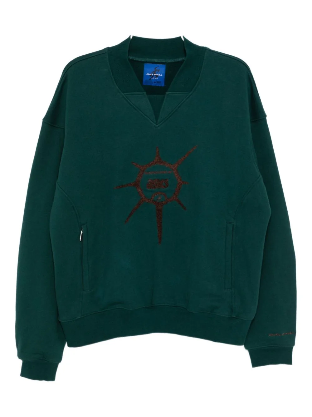 graphic-embroidered sweatshirt Highlights - Dark green - Ribbed cuffs and hem - Crew neck - Long sleeves Imported Composition Cotton 100% SIZE & FIT Model measurements Height 5 ft 10 in(1.78 m) Bust/Chest 29.52 in(75 cm) Hips 34.25 in(87 cm) Waist 24.4 in(62 cm) FittingInformation This piece is unisex – if you usually select men's sizing expect a loose fit throughout; if you usually select women's sizes, expect an oversized fit The ribbed hem offers a close, comfortable fit Made from a midweight non-stretch fabric, this piece offers minimal elasticity when worn Washing instructions Machine Wash