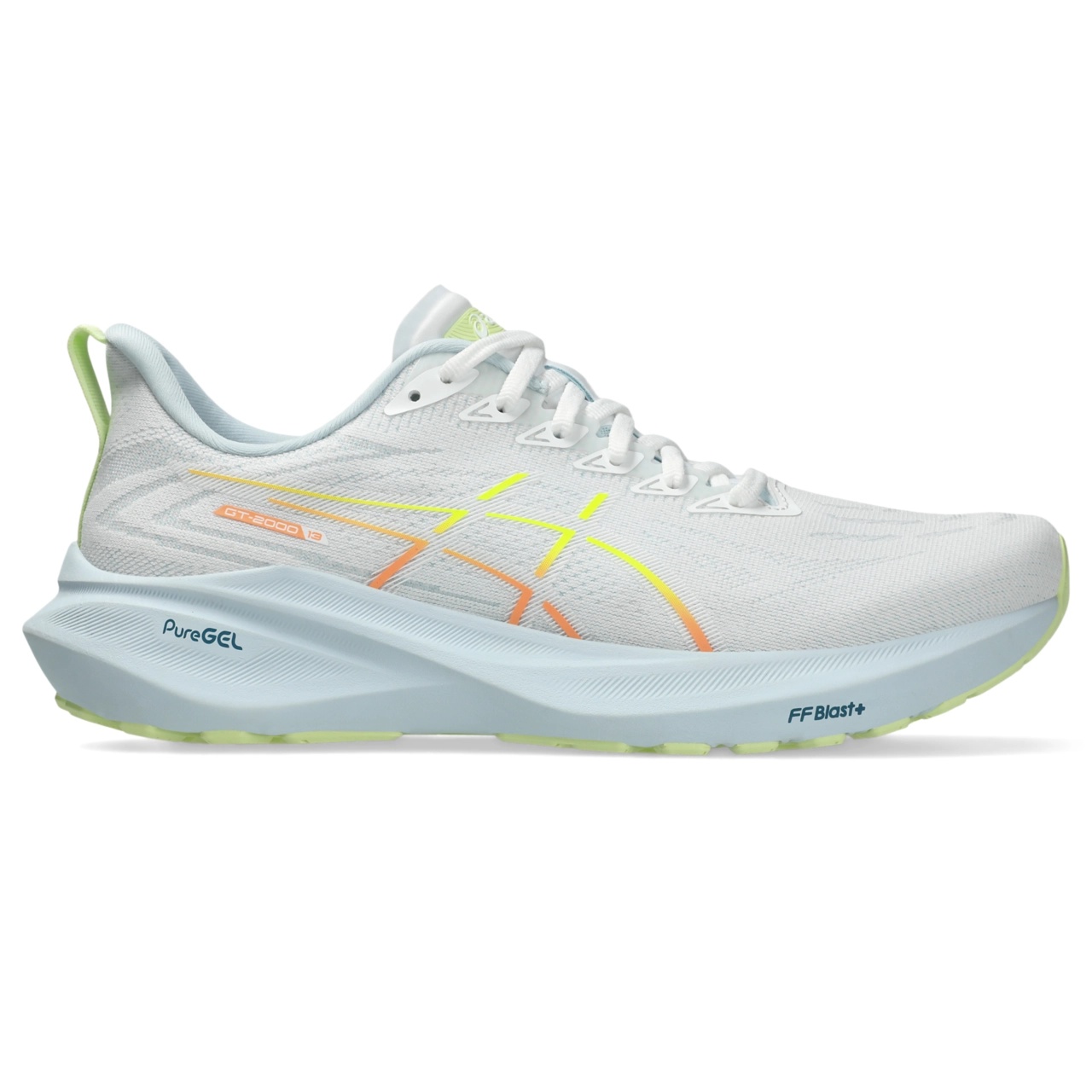 Move from apprehensive to assertive with the GT-2000™ 13 shoe’s 3D GUIDANCE SYSTEM™ technology. Designed to help provide adaptative on-demand stability, this shoe's support properties allow you to experience a smooth and balanced transition from footstrike to toe-off. The midsole implements a full-length FF BLAST™ PLUS cushioning unit and PureGEL™ technology. These features help provide a more energized toe-off with cloud-like softness underfoot. Style #: 1011B861.100 UPC #: None Tech & Materials Jacquard mesh upper Offers a supportive and comfortable foothold At least 50% of the shoe's main upper material is made with recycled content to reduce waste and carbon emissions The sockliner is produced with the solution dyeing process that reduces water usage by approximately 33% and carbon emissions by approximately 45% compared to the conventional dyeing technology 3D GUIDANCE SYSTEM™ Helps provide advanced stability for a smoother stride Rearfoot PureGEL™ technology Helps provide lightweight cushioning and softer landings FF BLAST™ PLUS cushioning This material helps provide lightweight impact absorption and a responsive rebound OrthoLite™ X-30 sockliner Helps provides soft step-in comfort AHARPLUS™ heel plug rubber Helps improve durability AHAR® LOW HARDNESS outsole material Helps improve resistance against wear Reflective details Designed to help improve visibility in low-light settings