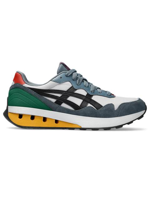 The JOGGER X81™ sneaker draws inspiration from various jogging shoes in the ASICS archive. The design pays homage to Japan's thorough recycling processes that helps the country maintain a clean environment. It features recycled paper, synthetic leather, and polyester to conserve resources for the good of the planet. We took inspiration from the ULTIMATE shoe’s cushioning structure. By updating this technology with larger holes on the outside and smaller holes on the inside, the shoe offers better cushioning and stability. Meanwhile, the Caldera outsole design references the shape formed by Hawaiian volcanoes after they erupt and collapse. This unique design was initially intended to help prevent soil from getting stuck in the tread when running off-road. Style #: 1201A744.102 UPC #: 196074680092 Tech & Materials Upper draws inspiration from the ULTIMATE™, TIGER PAW™ X1, SORTIE™ LYTE, GONA™, and X-CALIBER™ shoes Cush-Hole midsole structure from the ULTIMATE shoe Improves cushioning and stability. Caldera outsole design Helps prevent dirt from getting stuck in the tread.