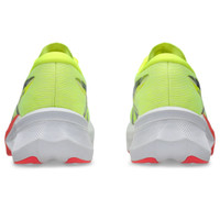 The MAGIC SPEED™ 4 shoe is designed to support your racing goals. In addition to the softer cushioning experience, this shoe helps create better stability throughout your stride. A sculpted carbon plate is designed to help improve stability and propel your foot forward. This helps create a smoother and more propulsive experience during the toe-off phase of your stride. Additionally, this shoe is updated with FF TURBO™ cushioning, which helps you experience a more energetic toe-off during tempo runs and races. Style #: 1011B875.750 UPC #: 197298429610 Tech & Materials Engineered Mesh upper Improves breathability At least 50% of the shoe’s main upper material is made with recycled materials to reduce waste and carbon emissions The sockliner is produced with the solution dyeing process that reduces water usage by approximately 33% and carbon emissions by approximately 45% compared to the conventional dyeing technology Full-length carbon plate Adds structure and improve toe-off propulsion FF BLAST™ TURBO cushioning Our lightest and bounciest cushioning material that's 33% lighter and 13% more responsive than FF BLAST™ cushioning ASICSGRIP™ rubber outsole Improves traction