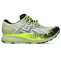 Go from adapting to accelerating and move your mind with the METAFUJI™ TRAIL shoe. It's designed to help provide advanced energy savings and cushioning properties to help you navigate the trails with less effort. FF TURBO™ and FF BLAST™ PLUS technologies are combined to create effortless impact absorption while producing a responsive energy return. A full-length carbon plate is strategically positioned in the midsole to create a confident and controlled stride. This helps to increase propulsion and propel you towards a faster time on varying terrain. Style #: 1013A141.300 UPC #: 197298510646 Tech & Materials Motion Wrap TR upper At least 50% of the shoe’s main upper material is made with recycled materials to reduce waste and carbon emissions The sockliner is produced with the solution dyeing process that reduces water usage by approximately 33% and carbon emissions by approximately 45% compared to the conventional dyeing technology FF TURBO™ cushioning Our lightest and most responsive cushioning material that helps create energized rebounds FF BLAST™ PLUS technology Cushioning creates a softer landing and a more responsive toe-off Carbon plate Unique geometry and positioning of this plate helps control speed and create propulsive toe-offs ASICSGRIP™ outsole Improves durability OrthoLite™ sockliner Provides soft step-in comfort Reflective details Designed to improve visibility in low-light conditions Breathable mesh upper Gaiter system