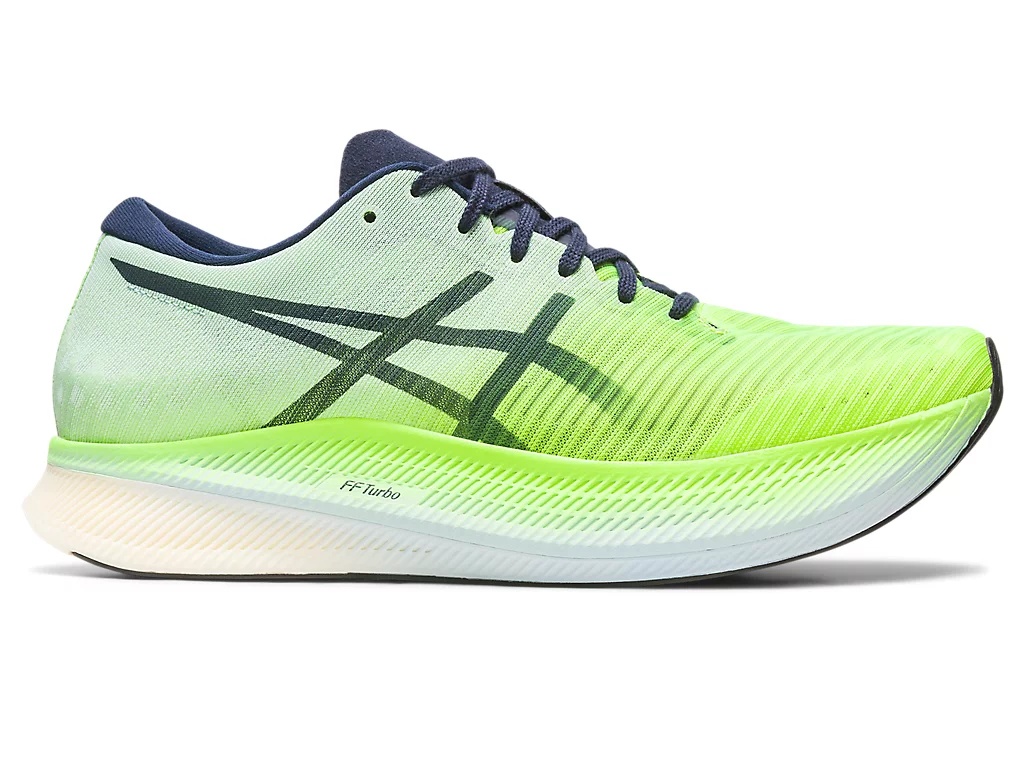 The METASPEED™ Sky racing shoe moves you towards a sound mind and a new personal best. It's designed to help you go faster by extending your stride length. Stride-style runners take a longer stride once they start increasing their speed, but their cadence primarily remains consistent. Thanks to an energetic midsole foam and a propulsive carbon plate, runners wearing these shoes will be able to conserve more energy while maintaining their pace at the later stages of the race.? Style #: 1011B215.301 UPC #: 196074635443 Tech & Materials Engineered Mesh Upper Multi-directional mesh material improves ventilation and stability. FLYTEFOAM BLAST TURBO™ Cushioning that improves compression and creates a responsive feel underfoot. Curved Sole Design Helps runners conserve more energy in each step Carbon Plate Guides your foot throughout your step and propels your foot forward. ASICSGRIP™ Technology ASICS proprietary outsole rubber provides high grip on various terrain, without compromising durability.