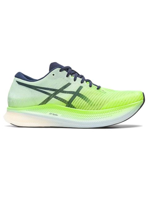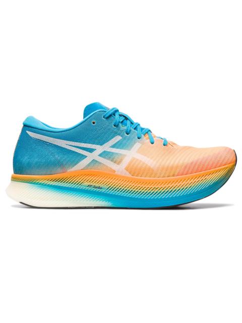 The METASPEED™ Sky racing shoe moves you towards a sound mind and a new personal best. It's designed to help you go faster by extending your stride length. Stride-style runners take a longer stride once they start increasing their speed, but their cadence primarily remains consistent. Thanks to an energetic midsole foam and a propulsive carbon plate, runners wearing these shoes will be able to conserve more energy while maintaining their pace at the later stages of the race.? Style #: 1011B215.800 UPC #: 196074179060 Tech & Materials Engineered Mesh Upper Multi-directional mesh material improves ventilation and stability. FLYTEFOAM BLAST TURBO™ Cushioning that improves compression and creates a responsive feel underfoot. Curved Sole Design Helps runners conserve more energy in each step Carbon Plate Guides your foot throughout your step and propels your foot forward. ASICSGRIP™ Technology ASICS proprietary outsole rubber provides high grip on various terrain, without compromising durability.