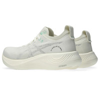 The NIMBUS MIRAI™ shoe is taking steps towards creating a truly zero waste running shoe. A soft engineered knit upper comfortably wraps your foot while supplying advanced ventilation. We've created a new glue that allows this feature to be separated from the midsole after applying heat. Part of our take-back program, this construction allows you to bring the upper and sole back so the shoes can be repurposed. It's also made with 100% recycled content and one type of polyester to support a sound earth. FF BLAST™ PLUS ECO cushioning is engineered with 24% bio-based content. It's designed to help create lightweight and energetic cushioning properties. Style #: 1013A138.100 UPC #: 197298268738 Tech & Materials Engineered knit upper Wraps the foot with a soft feel while improving breathability At least 75% of the shoe's main upper material is made with recycled content to reduce waste and carbon emissions New glue material Allows the upper and sole to be separated after applying heat Single use of polyester in the upper Part of our take-back program Partnership with TerraCycle allows the shoes to be brought back and repurposed The sockliner is produced with the solution dyeing process that reduces water usage by approximately 33% and carbon emissions by approximately 45% compared to the conventional dyeing technology FF BLAST™ PLUS ECO technology Cushioning creates a softer landing and a more responsive toe-off OrthoLite™ X-55 sockliner Improves step-in comfort Reflective details Designed to improve visibility in low-light conditions ASICS®GRIP™ outsole Provides high grip on various terrain, without compromising durability