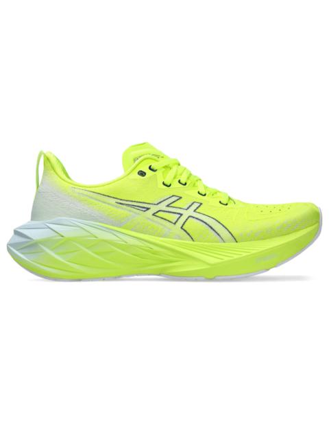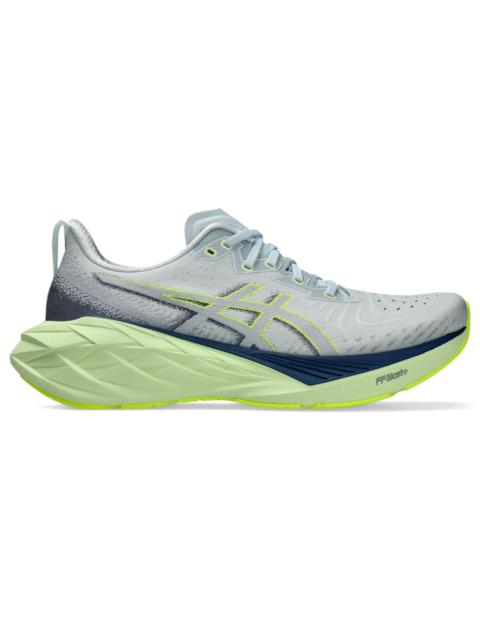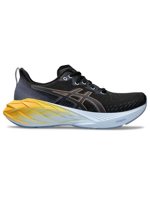 The NOVABLAST® 4 running shoe features a new midsole and outsole geometry that helps produce an energized ride. A tongue wing construction in the upper helps improve the fit while reducing tongue movement. It's complemented with an engineered woven upper that offers more stretch, ventilation, and durability. FF BLAST™ PLUS ECO cushioning is made with 20% recycled bio-based content. This material helps create softer landings and a more energized toe-off during your training. Style #: 1011B693.101 UPC #: 197298135825 Tech & Materials Engineered woven upper Offers advanced stretch, ventilation, and durability Tongue wing construction Added stretch helps improve the fit while reducing tongue movement Gusseted tongue wing fit system improves the midfoot fit and reduces tongue sliding FF BLAST™ PLUS ECO cushioning Made with approximately 20% bio-based content and helps provide cloud-like comfort Trampoline-inspired outsole design Helps provide a more responsive bounce back AHAR® outsole improves durability At least 75% of the shoe’s main upper material is made with recycled materials to reduce waste and carbon emissions The sockliner is produced with the solution dyeing process that reduces water usage by approximately 33% and carbon emissions by approximately 45% compared to the conventional dyeing technology Reflective details help improve visibility in low-light settings