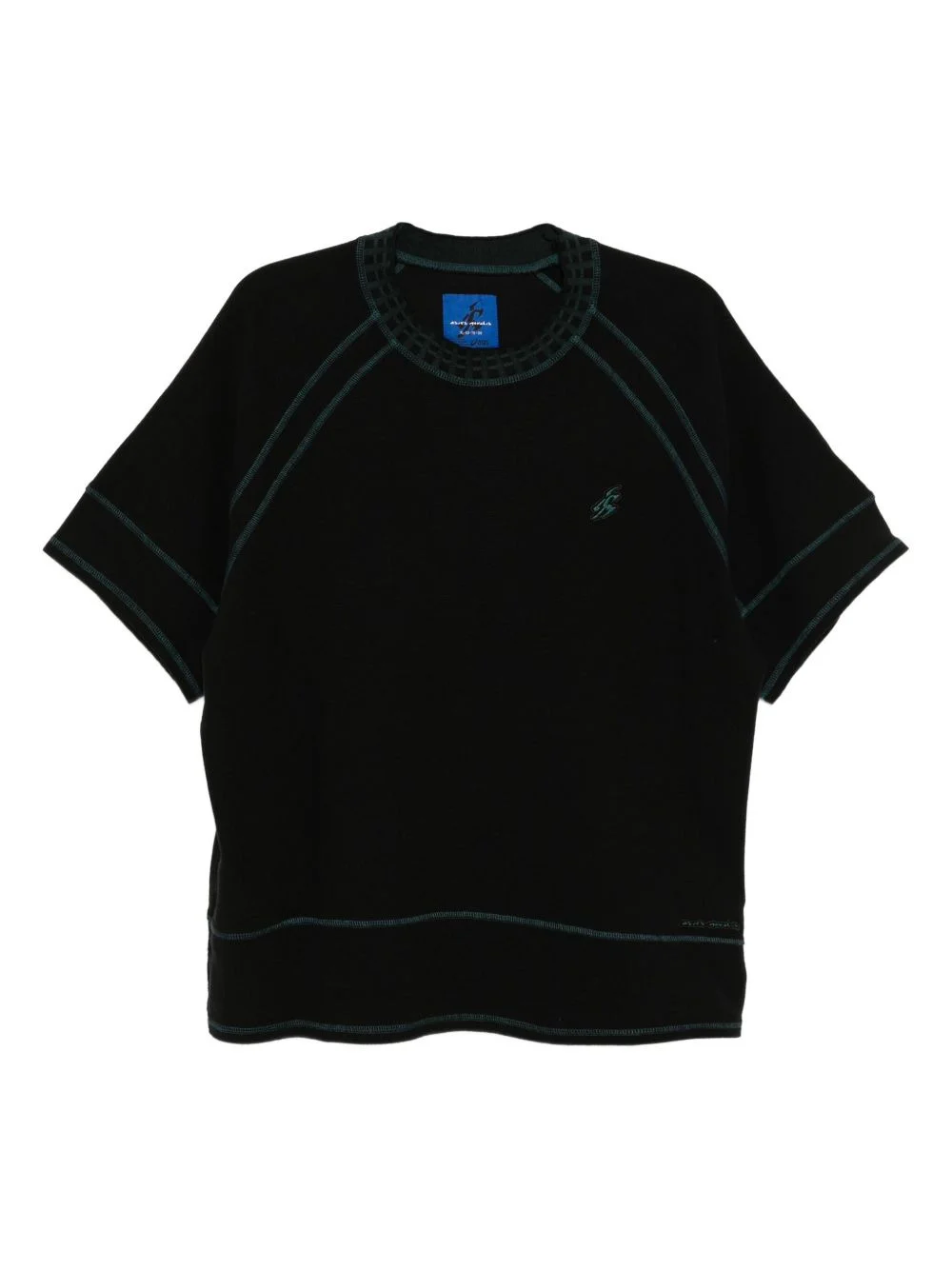 slogan-embroidered T-shirt Highlights - Black - Contrast stitching - Crew neck - Short sleeves Imported Composition Cotton 100% SIZE & FIT Model measurements Height 5 ft 10 in(1.78 m) Bust/Chest 29.52 in(75 cm) Hips 34.25 in(87 cm) Waist 24.4 in(62 cm) FittingInformation This unisex piece is designed for a loose fit whether you usually select women's or men's sizes Made with a midweight knit, this piece offers some stretch Washing instructions Machine Wash