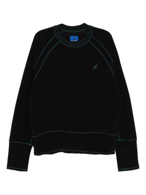 slogan-embroidered T-shirt Highlights - Black - Contrast stitching - Crew neck - Long sleeves Imported Composition Cotton 100% SIZE & FIT Model measurements Height 5 ft 10 in(1.78 m) Bust/Chest 29.52 in(75 cm) Hips 34.25 in(87 cm) Waist 24.4 in(62 cm) FittingInformation This unisex piece is designed for a loose fit whether you usually select women's or men's sizes Made with a midweight knit, this piece offers some stretch Washing instructions Machine Wash