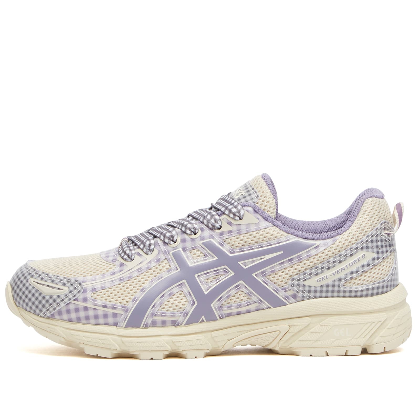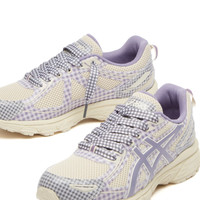 In a meeting of minds that feels both unexpected and effortlessly natural, ASICS partners with UK-based label Story mfg. to rework the trail-born GEL-Venture 6 through a cottagecore lens. Known for its deeply-rooted commitment to sustainability and slow-made craft, Story mfg. brings its earthy, homespun aesthetic to the sneaker world for the first time and the result is a quietly radical take on a performance icon. Swapping synthetic sheen for hand-crafted charm, this reimagined GEL-Venture 6 is wrapped in breathable mesh and detailed with folksy gingham overlays that nod to countryside tablecloths and patchwork living. A dual-lace system woven with gingham continues the tactile, handcrafted feel. - Breathable Mesh Uppers - Gingham Check Overlays - Double Lacing System - GEL-Cushioned Outsole - Co-Branded Tongue - Product Code: 1203A712-250