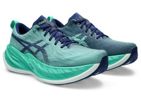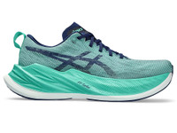The SUPERBLAST™ shoe is the newest hero of the BLAST series. It creates a lightweight and responsive ride that makes it functional for long runs, tempo runs, and everything in between.This shoe's upper construction features an asymmetric mesh design. It features different colors on the medial and lateral angles of the shoe for visual interest.The midsole features a combination of FF BLAST™ PLUS and FF BLAST™ TURBO cushioning. Also used in our METASPEED™ racing models, this foam helps creates one of the lightest and bounciest running experiences. Style #: 1013A127.302 UPC #: 197298200349 Tech & Materials Jacquard woven upper material Improves airflow to help your feet keep cool. The heel stabilizer Helps support the foot and create a more balanced stride. Gusseted tongue wing fit system Improves the midfoot fit and reduces tongue sliding. FF BLAST TURBO™ cushioning Improves compression and creates a responsive feel underfoot. FF BLAST™ PLUS cushioning Provides lightweight impact absorption and a responsive rebound. Trampoline-inspired outsole design Provides a more responsive bounce back. AHARPLUS™ outsole rubber Improves the outsole durability. The sockliner is produced with the solution dyeing process that reduces water usage by approximately 33% and carbon emissions by approximately 45% compared to the conventional dyeing technology. Reflective details are designed to improve visibility in low-light settings.